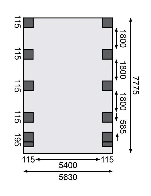 Přístřešek na auto - obdélníkový tvar a svými rozměry vyhovuje většině modelů vozidel běžných na českém trhu. Celková zastřešená plocha je 3,18 x 8,60 m. Průjezdná výška je 206 cm. Střechu podpírá deset dřevěných sloupků 11,5 x 11,5 cm. Konstrukce přístřešku je tlakově impregnována a je tak dobře chráněna proti dřevokazným houbám i hmyzu, ale i proti nepříznivým povětrnostním podmínkám. Impregnace je zdravotně nezávadná a naprosto bezpečná. Vzhledem k velkým plochám střechy a zatížení větrem je nutné připevnit přístřešek k zemi pomocí odpovídajících zemních kotev (nejsou obsahem dodávky - lze dokoupit jako příplatkové příslušenství).