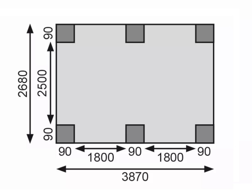 Přístřešek na auto - obdélníkový tvar a svými rozměry vyhovuje řadě modelů vozidel běžných na českém trhu (nutno ověřit velikost vozu). Celková zastřešená plocha je 3,04 x 4,90 m. Průjezdná výška je 206 cm. Střechu podpírá šest dřevěných sloupků 9 x 9 cm. Konstrukce přístřešku je tlakově impregnována a je tak dobře chráněna proti dřevokazným houbám i hmyzu, ale i proti nepříznivým povětrnostním podmínkám. Impregnace je zdravotně nezávadná a naprosto bezpečná. Vzhledem k velkým plochám střechy a zatížení větrem je nutné připevnit přístřešek k zemi pomocí odpovídajících zemních kotev (nejsou obsahem dodávky - lze dokoupit jako příplatkové příslušenství).