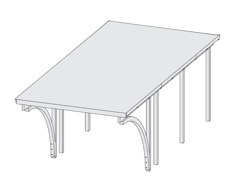 Tento model přístřešku obsahuje dva vjezdové oblouky, které výrazně ulehčují vjezd pod přístřešek z obou stran.