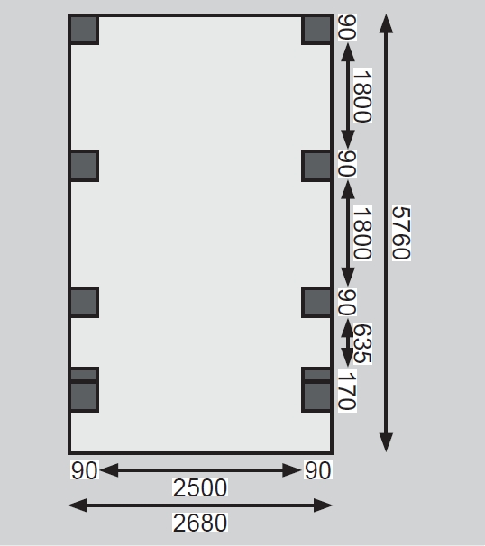 - vnější rozměry střechy - š 3,04 x d 6,76 m