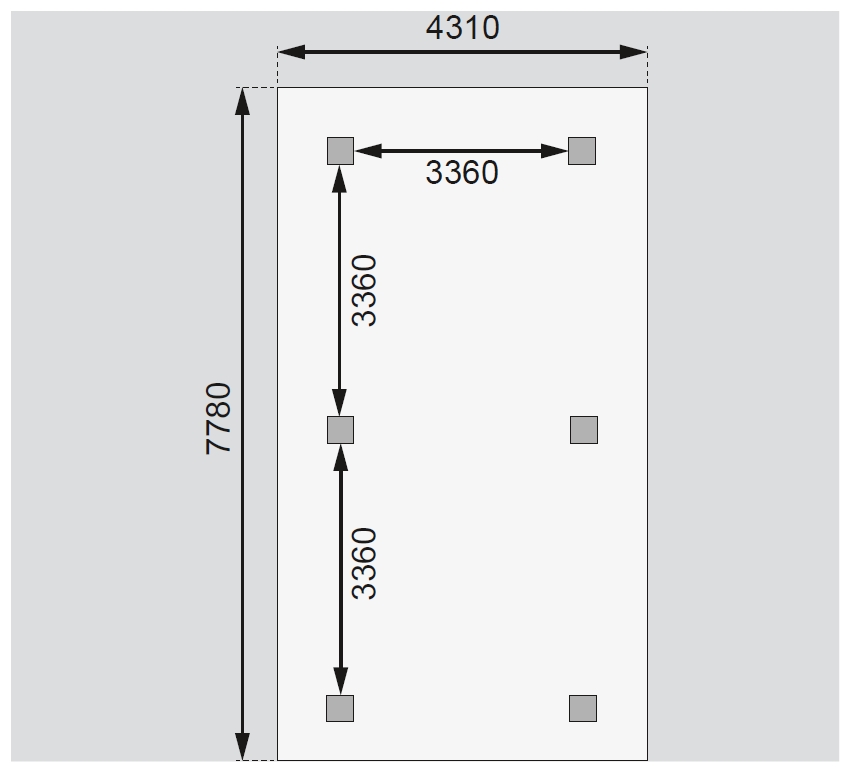 - vnější rozměry střechy - š 4,31 x 7,78 m