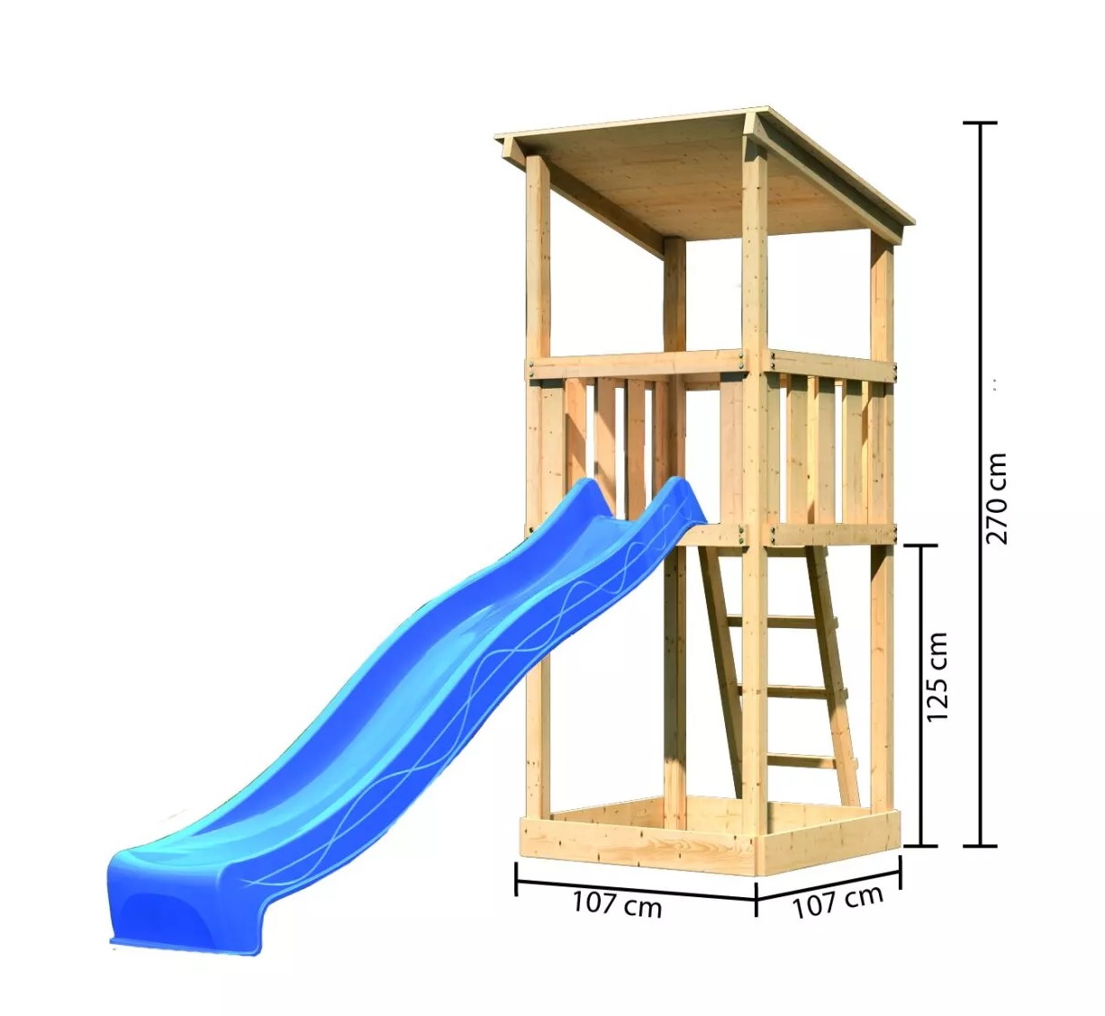 Dětské hřiště KARIBU ANNA poskytuje dětem spoustu možností ke hrám. Nabízí vše k tomu, aby děti mohly prožít veškeré své hrací fantazie. Stejně jako u všech našich dětských hřišť i u modelu KARIBU ANNA používáme výhradně to nejlepší smrkové dřevo. Hřiště má nosné sloupy o tloušťce 68 x 68 mm a je vyrobené z dřevěných profilů o síle 18 mm (spoje v systému pero / drážka). Naše dřevo pochází ze vzdáleného severu Evropy a je chemicky naprosto neošetřené. V důsledku toho je prosté všech známých problematických látek. Díky výšce plošiny 125 cm nabízí hřiště KARIBU ANNA dětem dokonalý výhled na zahradu. Hřiště je standardně vybaveno robustním dřevěným žebříkem se 4 příčkami a pískovištěm pod věží. Dětské hřiště KARIBU ANNA má samozřejmě certifikát TÜV Nord ověřující bezpečnost výrobku (GS) podle DIN EN 71-1, DIN EN 71-3, DIN EN 71-8 a AfPS GS 2014.