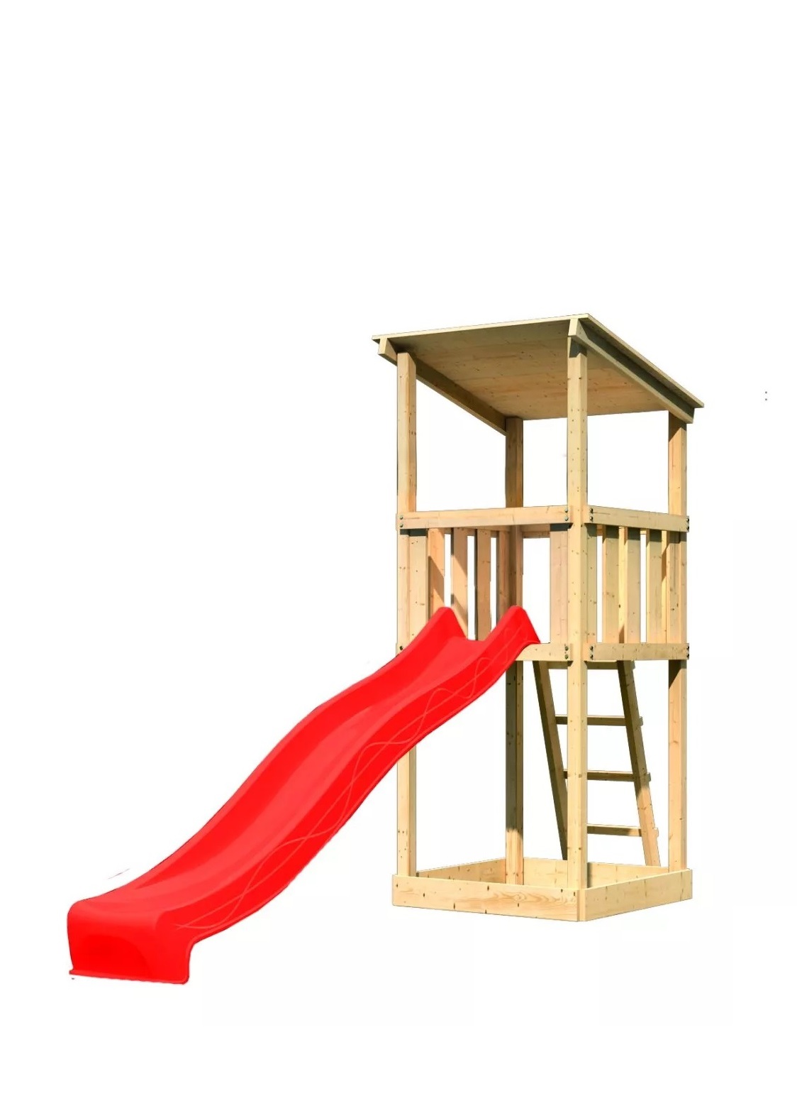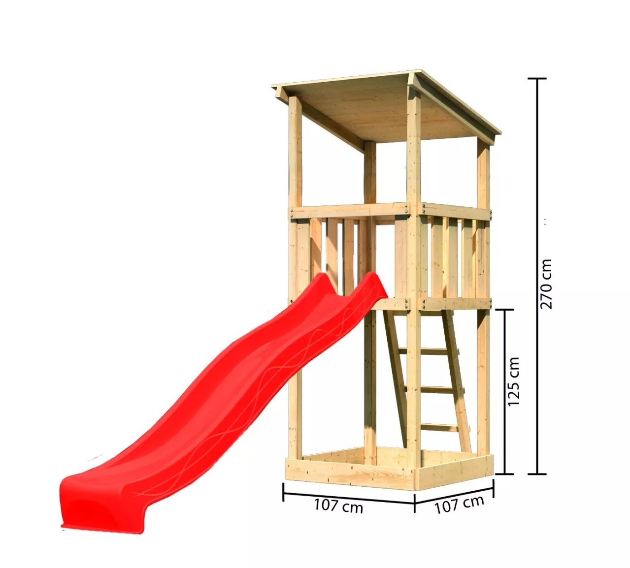Dětské hřiště KARIBU ANNA poskytuje dětem spoustu možností ke hrám. Nabízí vše k tomu, aby děti mohly prožít veškeré své hrací fantazie. Stejně jako u všech našich dětských hřišť i u modelu KARIBU ANNA používáme výhradně to nejlepší smrkové dřevo. Hřiště má nosné sloupy o tloušťce 68 x 68 mm a je vyrobené z dřevěných profilů o síle 18 mm (spoje v systému pero / drážka). Naše dřevo pochází ze vzdáleného severu Evropy a je chemicky naprosto neošetřené. V důsledku toho je prosté všech známých problematických látek. Díky výšce plošiny 125 cm nabízí hřiště KARIBU ANNA dětem dokonalý výhled na zahradu. Hřiště je standardně vybaveno robustním dřevěným žebříkem se 4 příčkami a pískovištěm pod věží. Dětské hřiště KARIBU ANNA má samozřejmě certifikát TÜV Nord ověřující bezpečnost výrobku (GS) podle DIN EN 71-1, DIN EN 71-3, DIN EN 71-8 a AfPS GS 2014.