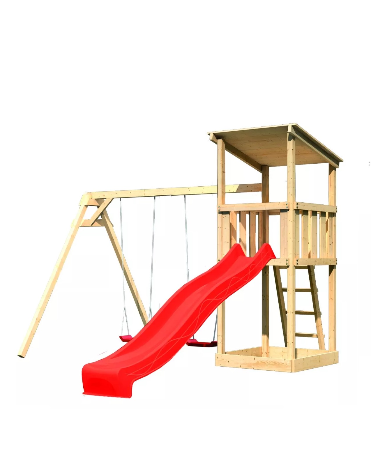 - dvousedadlová houpačka včetně závěsů a dvou červených sedátek