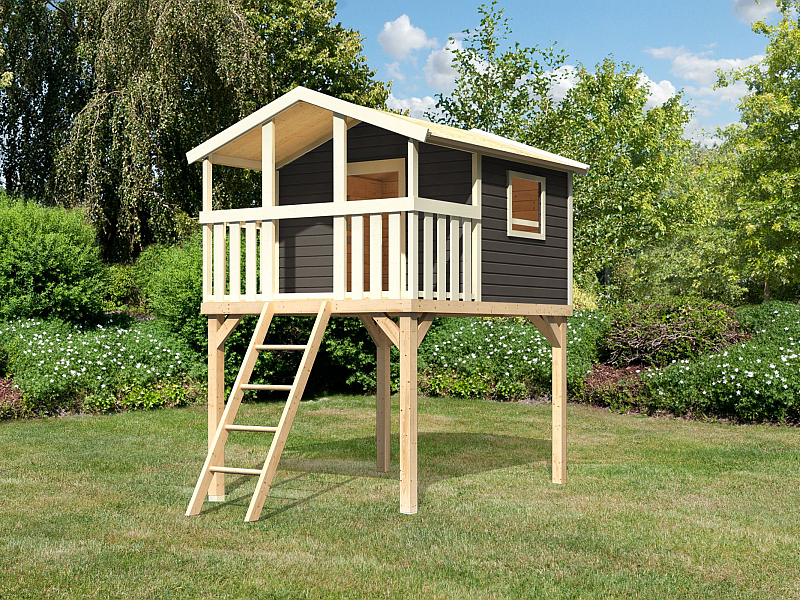 Tento model hřiště dodáváme v profesionálním nátěru KARIBU (tmavě terragrau RAL 0604005 RAL 060 40 05):