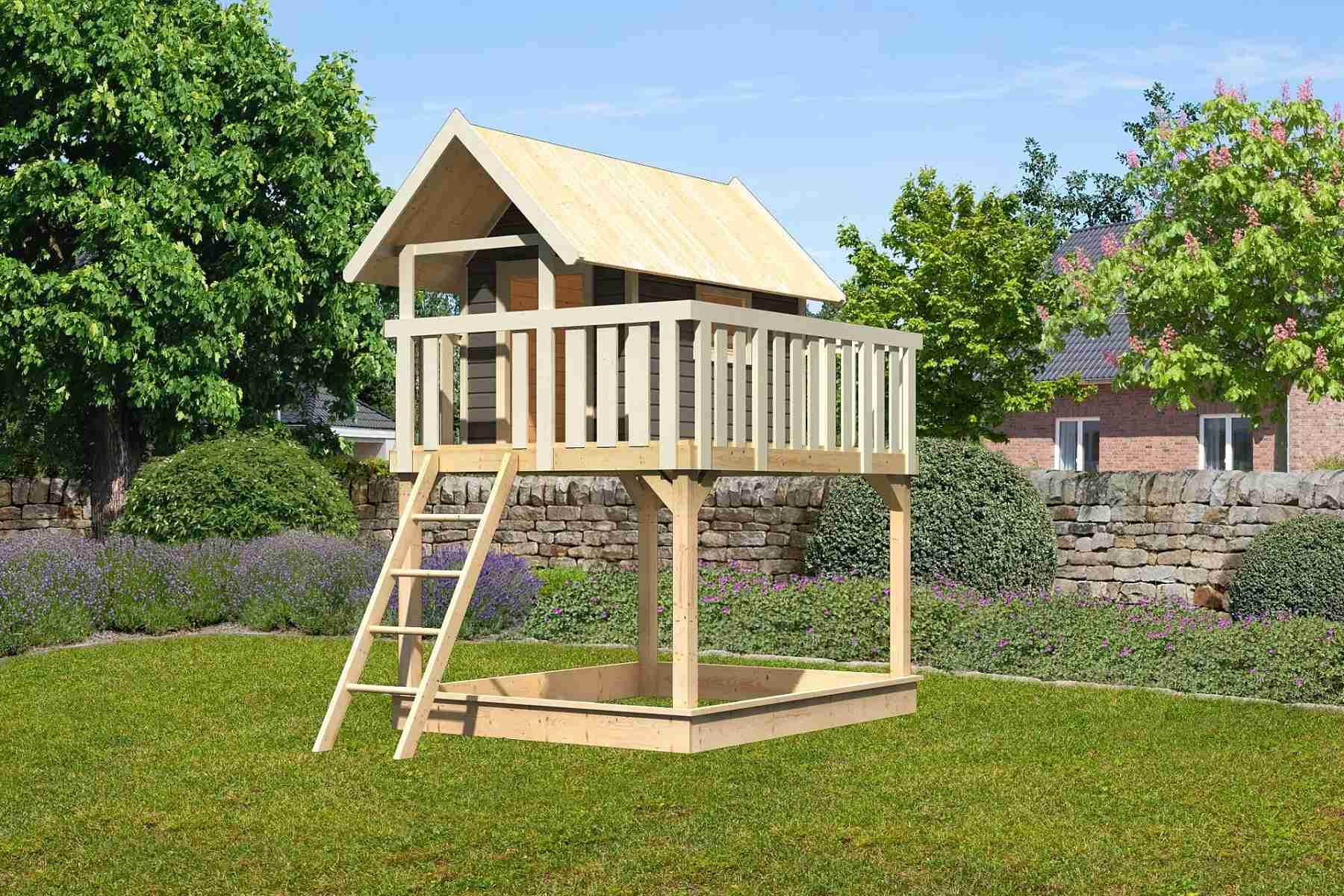 Dětské hřiště KARIBU FIDEL zaujme mimořádně vysokou stabilitou a dlouhou životností. Poskytuje dětem spoustu možností ke hrám. Nabízí vše k tomu, aby děti mohly prožít veškeré své hrací fantazie. Stejně jako u všech našich dětských hřišť i u modelu KARIBU FIDEL používáme výhradně to nejlepší smrkové dřevo. Hřiště má nosné sloupy o tloušťce 90 x 90 mm a je vyrobené z dřevěných profilů o síle 19 mm (spoje v systému pero / drážka). Naše dřevo pochází ze vzdáleného severu Evropy a je chemicky naprosto neošetřené. V důsledku toho je prosté všech známých problematických látek. Díky výšce plošiny 150 cm nabízí hřiště KARIBU FIDEL dětem dokonalý výhled na zahradu. Hřiště je standardně vybaveno robustním dřevěným žebříkem se 4 příčkami a pískovištěm pod věží. Dětské hřiště KARIBU FIDEL má samozřejmě certifikát TÜV Nord ověřující bezpečnost výrobku (GS) podle DIN EN 71-1, DIN EN 71-3, DIN EN 71-8 a AfPS GS 2014.