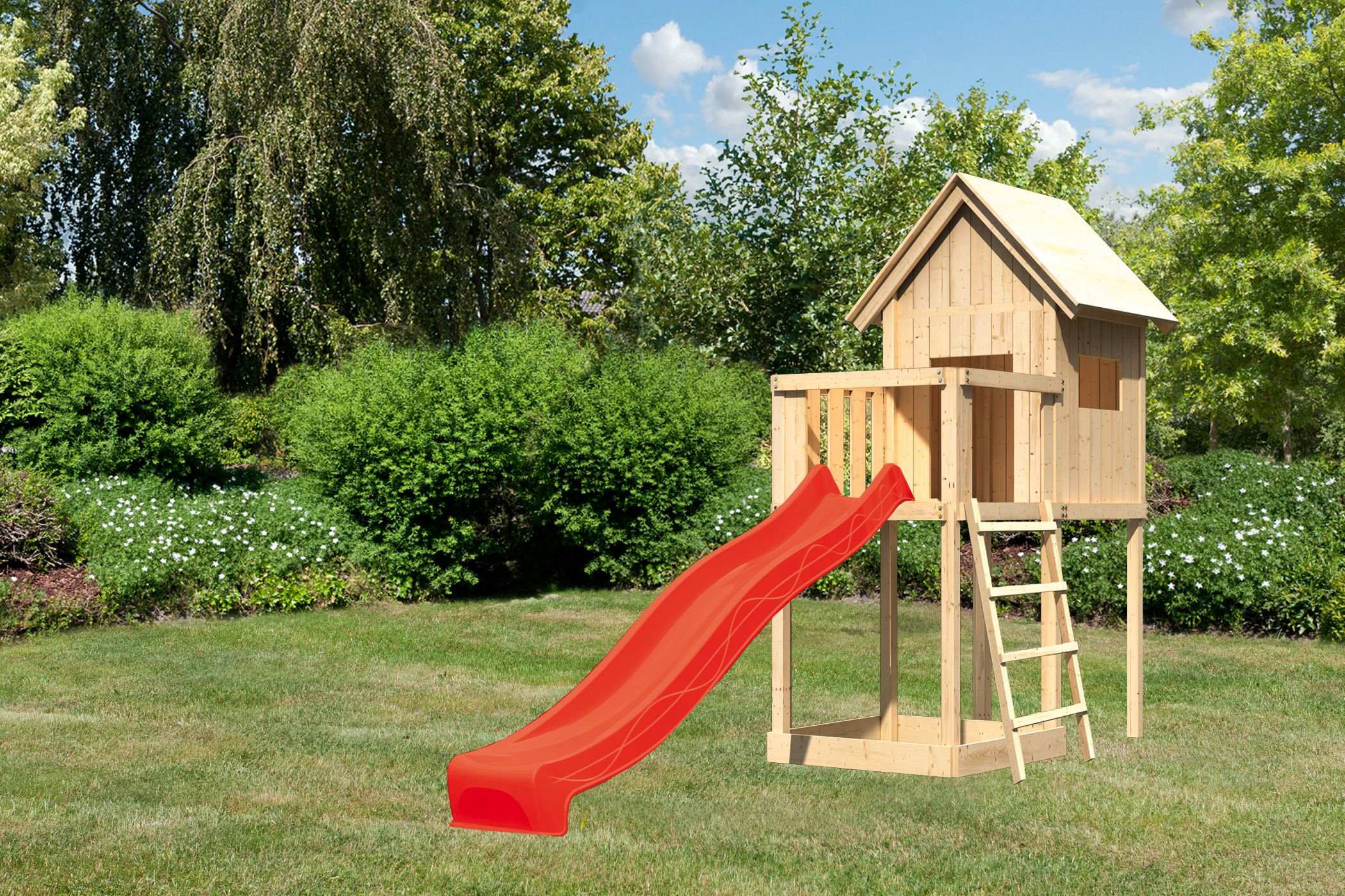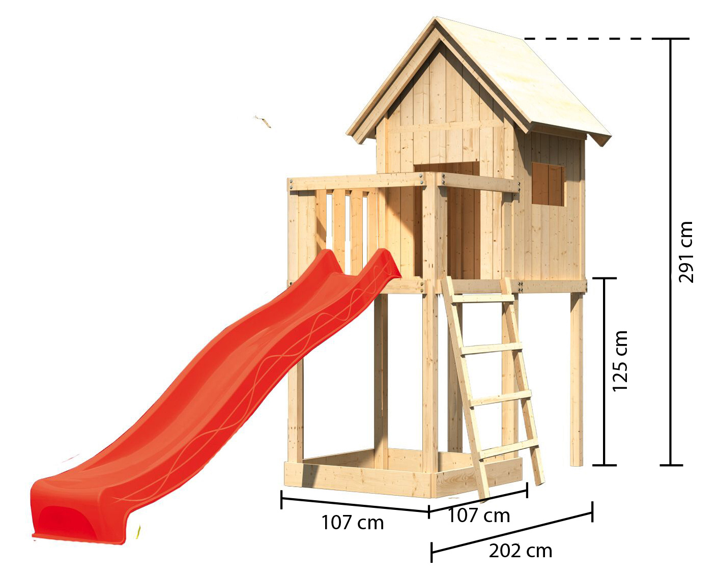 Dětské hřiště KARIBU FRIEDA poskytuje dětem spoustu možností ke hrám. Nabízí vše k tomu, aby děti mohly prožít veškeré své hrací fantazie. Stejně jako u všech našich dětských hřišť i u modelu KARIBU FRIEDA používáme výhradně to nejlepší přírodní smrkové dřevo. Hřiště má nosné sloupy o tloušťce 68 x 68 mm, stěny a podlahu z dřevěných profilů o síle 18 mm (systém pero / drážka). Terasa s domkem se nachází ve výšce 125 cm. Naše dřevo pochází ze vzdáleného severu Evropy a je chemicky naprosto neošetřené. V důsledku toho je prosté všech známých problematických látek. Díky výšce plošiny nabízí hřiště KARIBU FRIEDA dětem dokonalý výhled na zahradu. Sedlová střecha je vyrobena z dřevotřískových desek. Hřiště je standardně vybaveno robustním dřevěným žebříkem se 4 příčkami a pískovištěm pod věží. I tento výrobek má samozřejmě certifikát TÜV Nord ověřující bezpečnost výrobku (GS) podle DIN EN 71-1, DIN EN 71-3, DIN EN 71-8 a AfPS GS 2014.