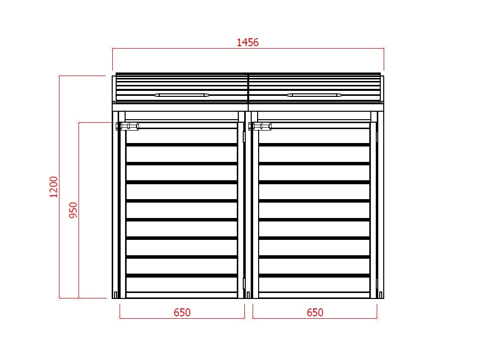 Dřevěný úložný box na 2 popelnice. Dřevo je ošetřeno tlakovou impregnací proti plísní, přesto ho doporučujeme ošetřit vhodnou povrchovou úpravou pro venkovní dřevo (podle vlastní volby) - tzn. protiplísňový nátěr plus např. lazura.