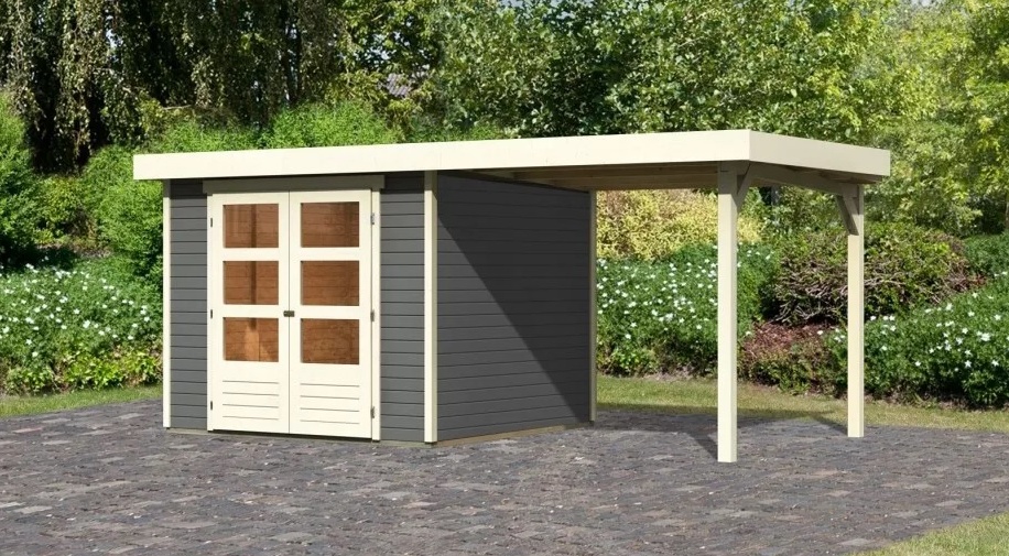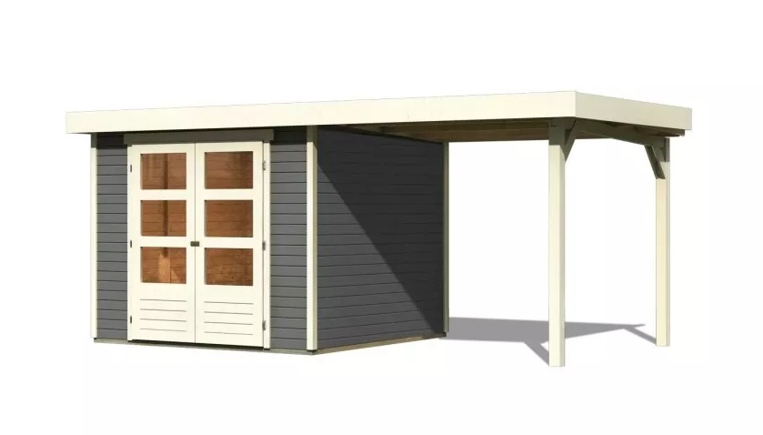 Tento model domku dodáváme v profesionálním nátěru KARIBU (odstín terragrau RAL 0604005):