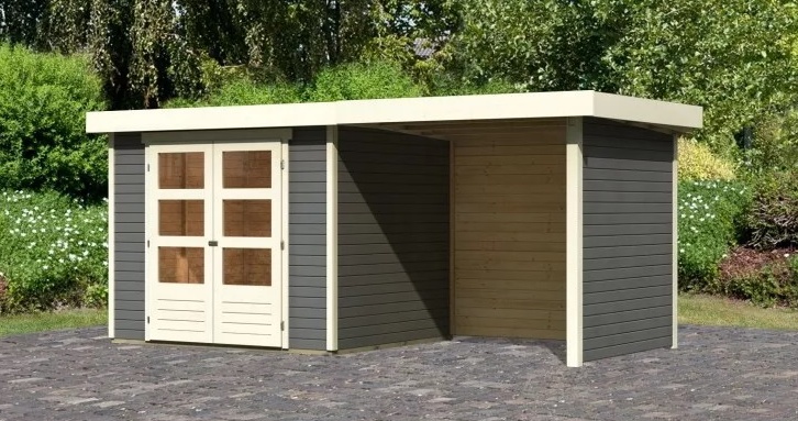 Tento model domku dodáváme v profesionálním nátěru KARIBU (odstín terragrau RAL 0604005):