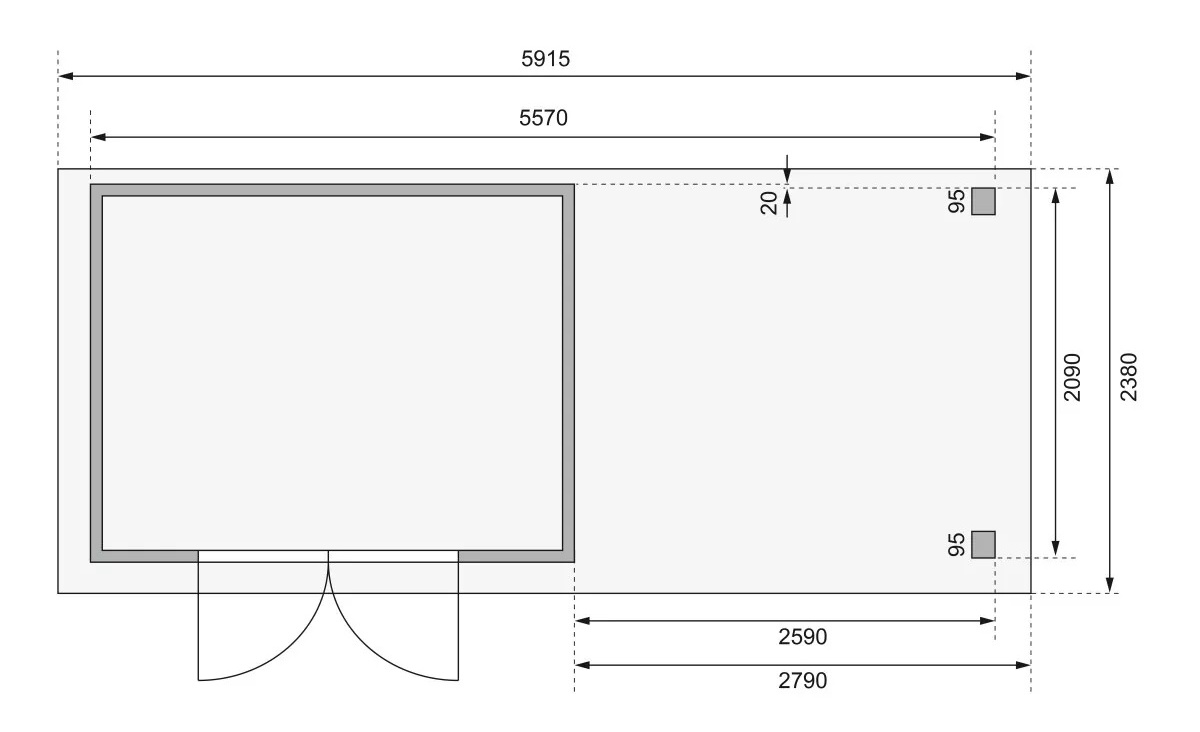 Tato verze domku obsahuje lamelový přístavek včetně zadní a boční stěny délky 280 cm montovatelný zprava nebo zleva.