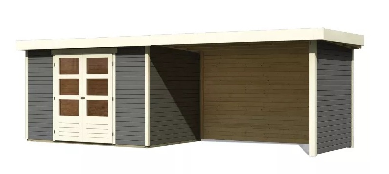 Tento model domku dodáváme v profesionálním nátěru KARIBU (odstín terragrau RAL 0604005):