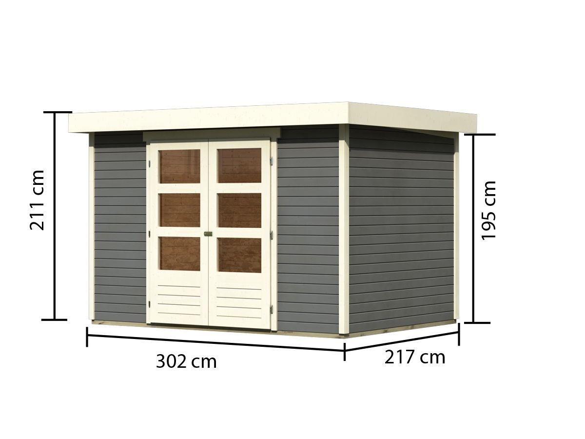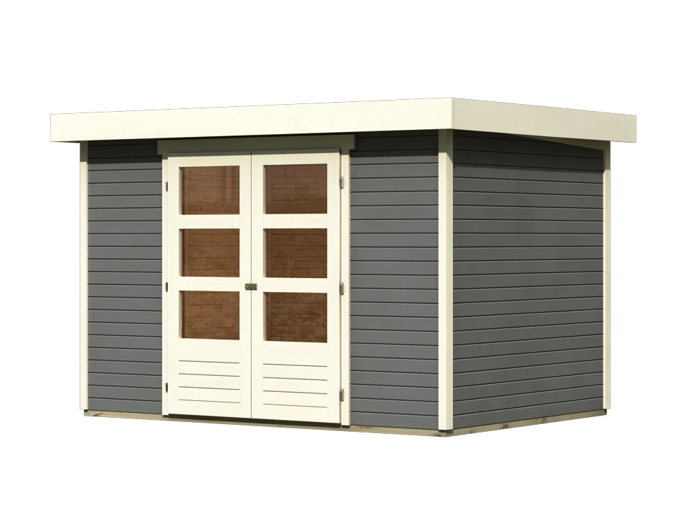 Tento model domku dodáváme v profesionálním nátěru KARIBU (odstín terragrau RAL 0604005):