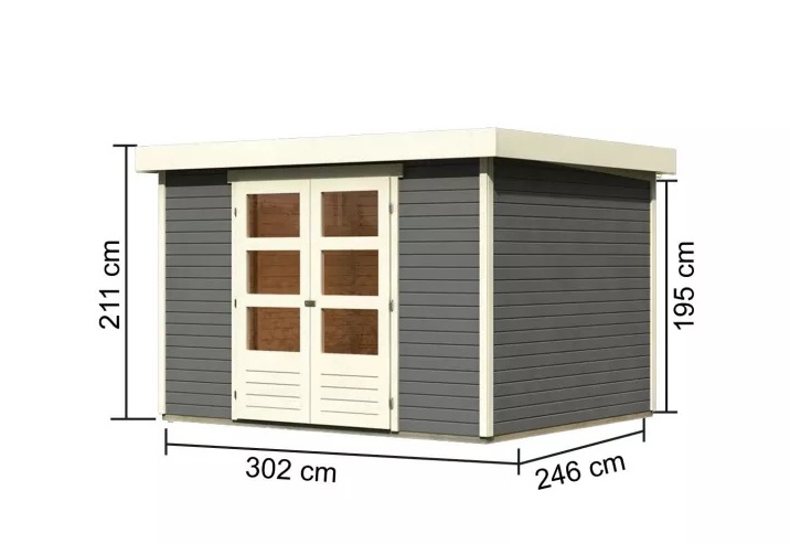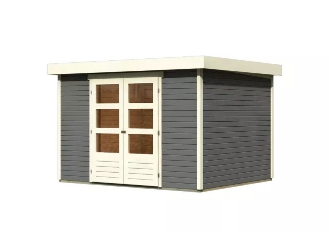 Tento model domku dodáváme v profesionálním nátěru KARIBU (odstín terragrau RAL 0604005):