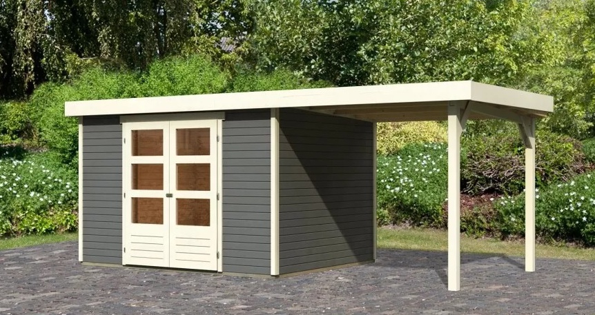 Tento model domku dodáváme v profesionálním nátěru KARIBU (odstín terragrau RAL 0604005):