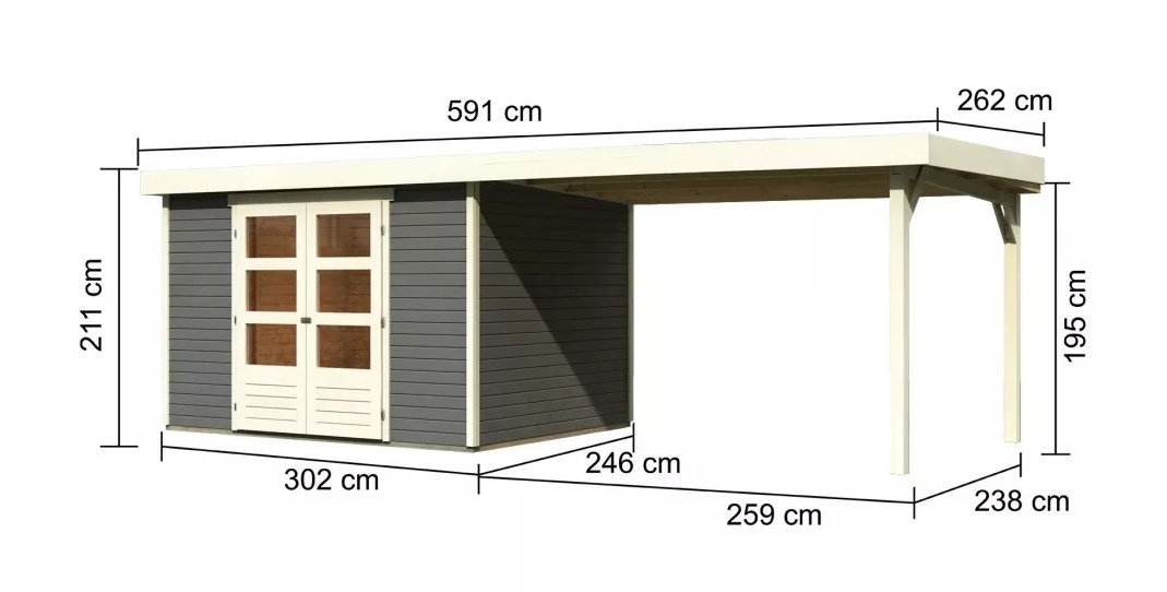 Tento model domku dodáváme v profesionálním nátěru KARIBU (odstín terragrau RAL 0604005):