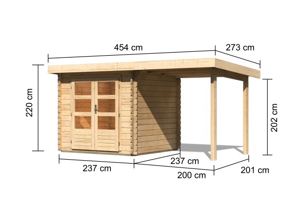 Tato verze domku obsahuje i přístavek délky 200 cm.