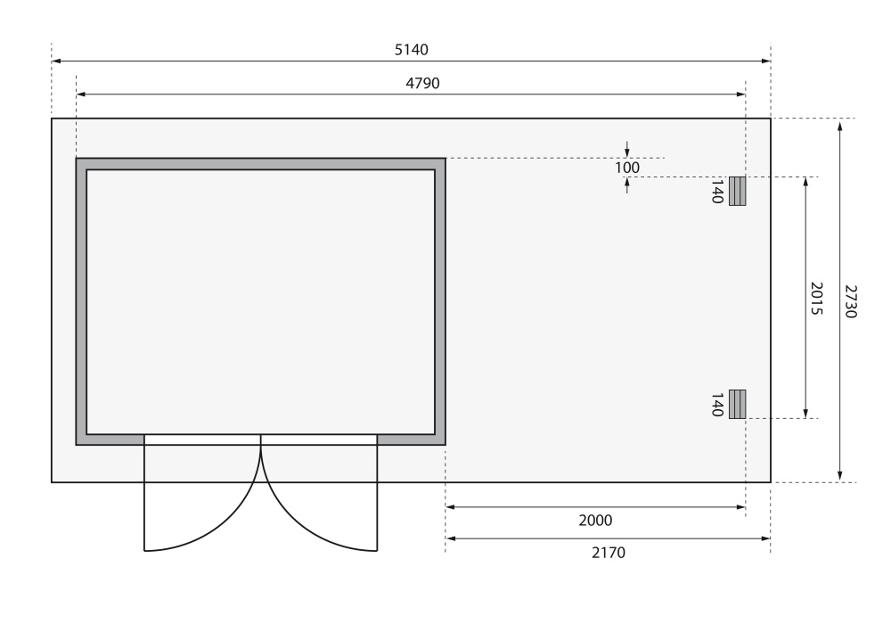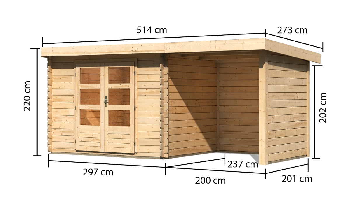 Tato verze domku obsahuje i přístavek včetně zadní a boční stěny délky 200 cm.