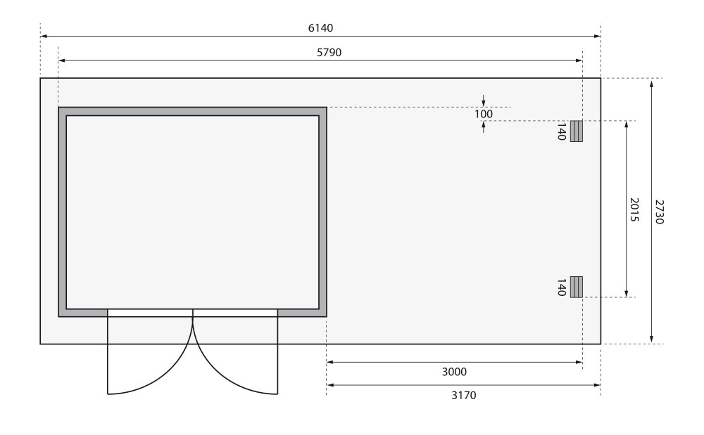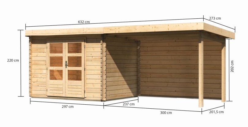Tato verze domku obsahuje i přístavek včetně zadní stěny délky 300 cm.