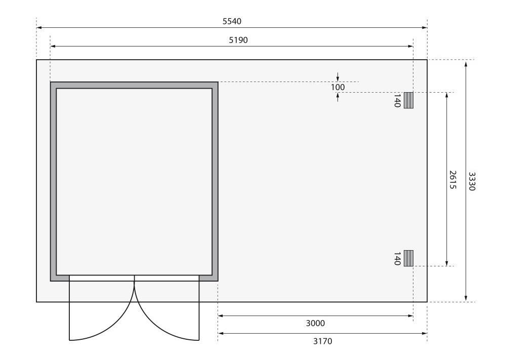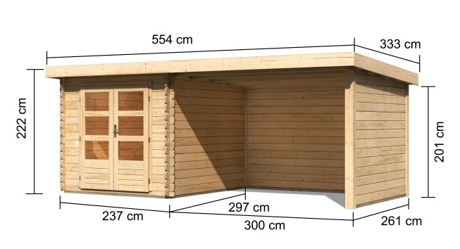 Tato verze domku obsahuje i přístavek včetně zadní a boční stěny délky 300 cm.