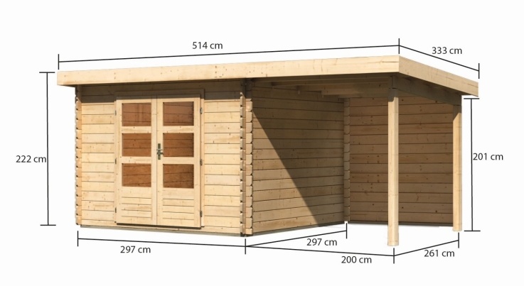 Tato verze domku obsahuje i přístavek včetně zadní stěny délky 200 cm.
