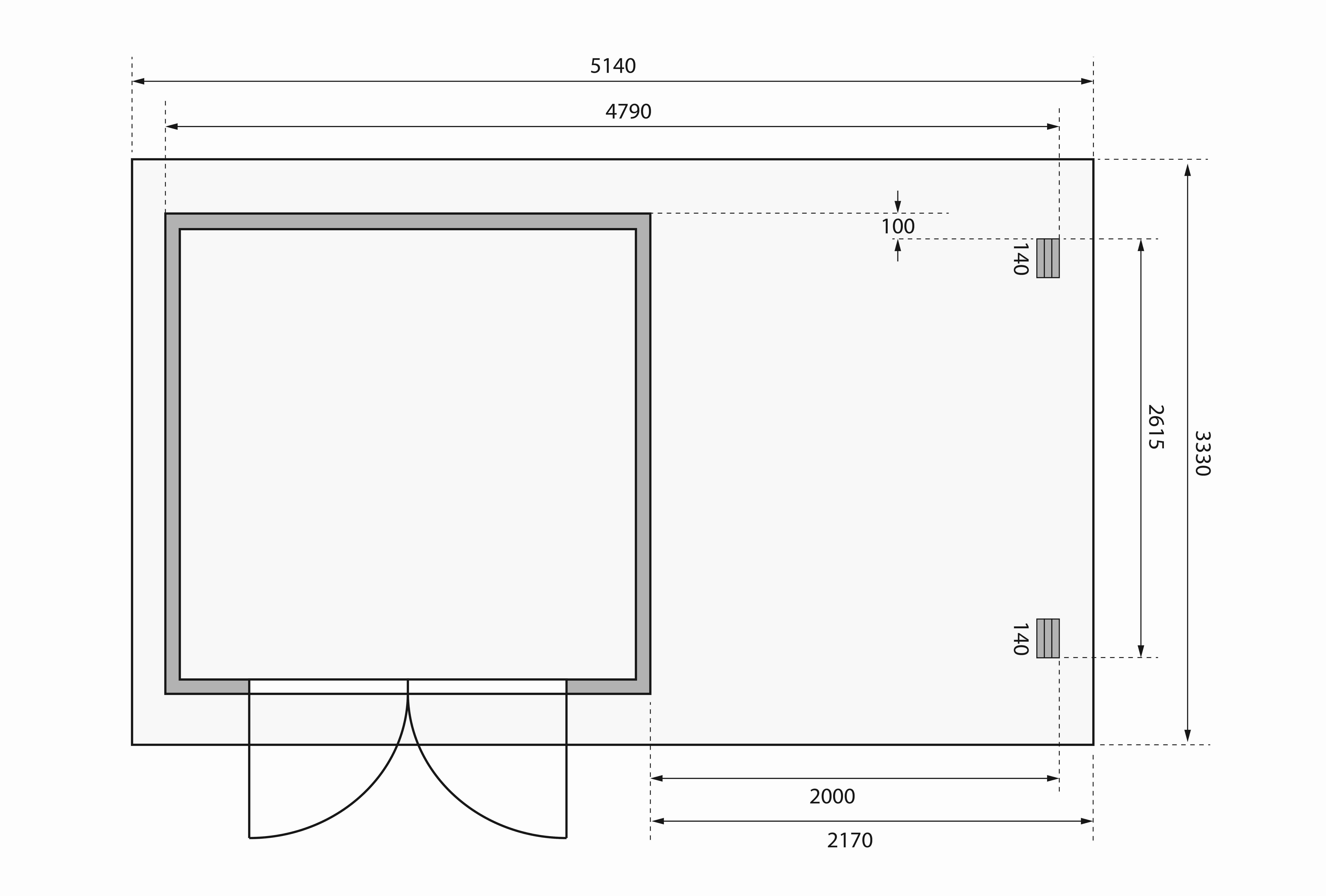 - dvoukřídlé dveře na pantech o celkové světlosti š 140 x v 173 cm