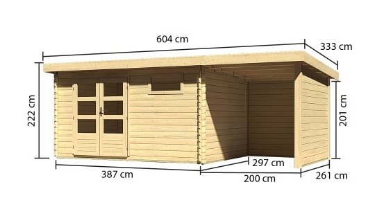 Tato verze domku obsahuje i přístavek včetně zadní a boční stěny délky 200 cm.