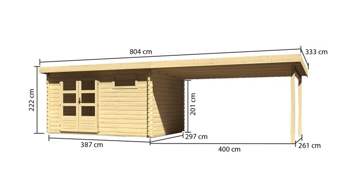 Tato verze domku obsahuje i přístavek délky 400 cm.