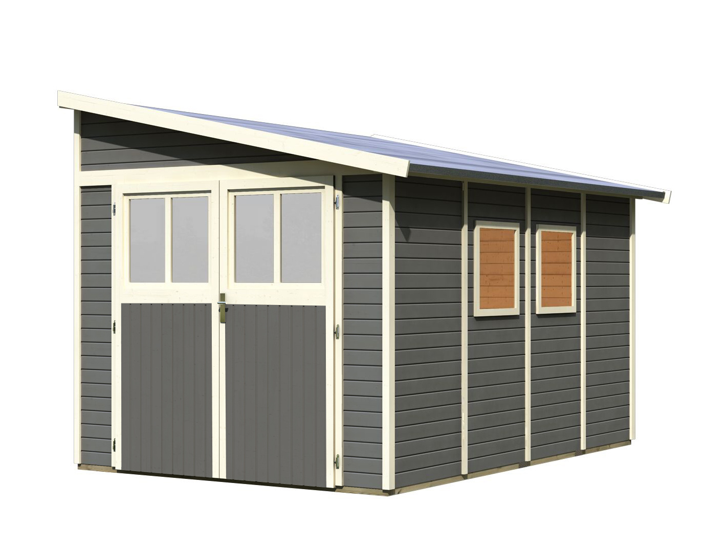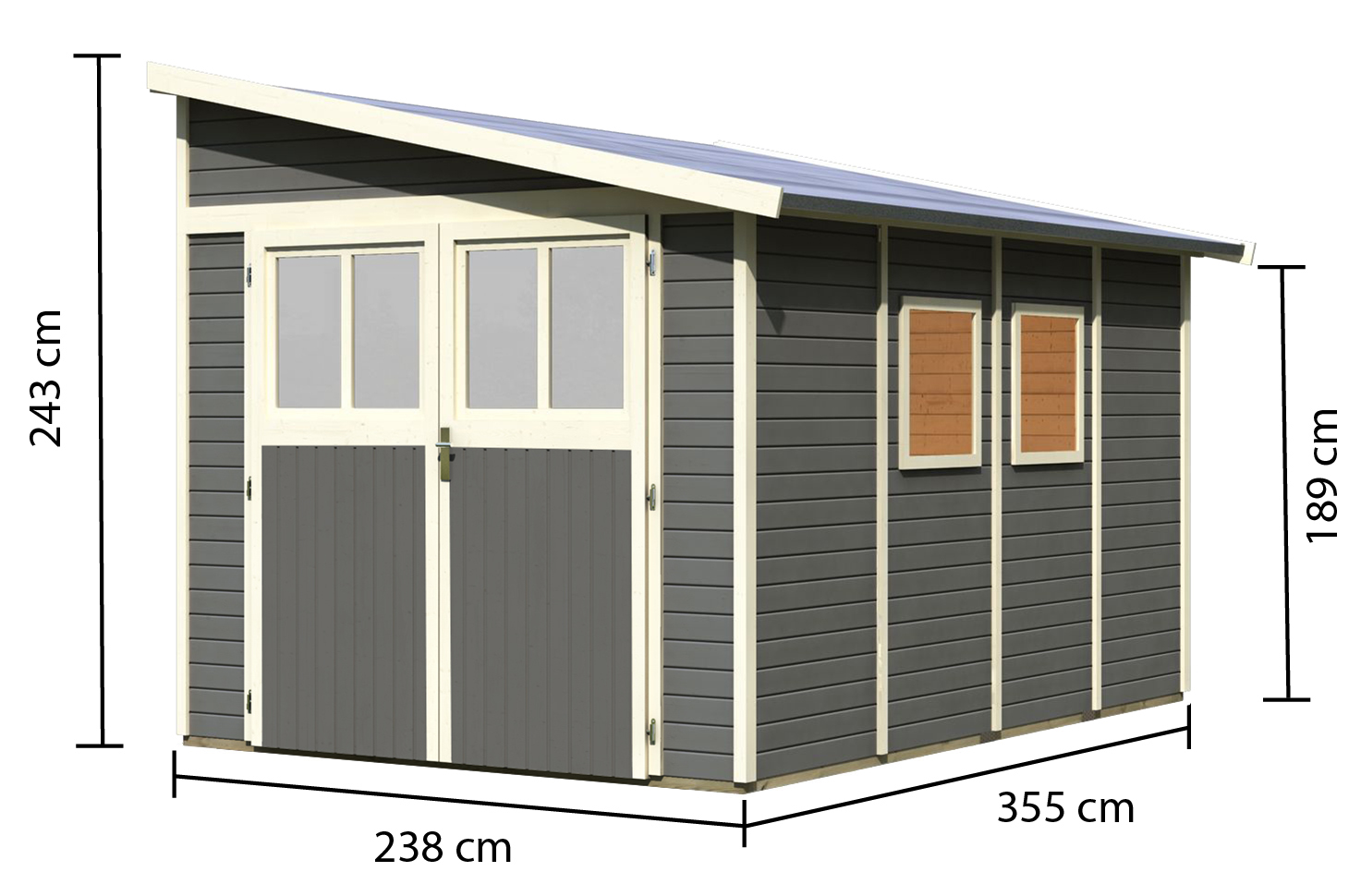 Tento model domku dodáváme v profesionálním nátěru KARIBU (odstín terragrau RAL 0604005):