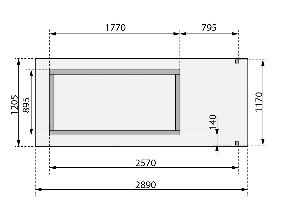 - rozměr střechy š 289 x d 120 cm