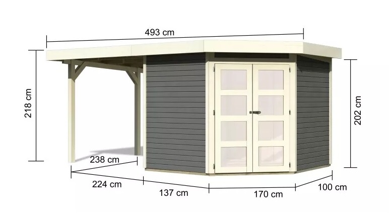 Tato verze domku obsahuje přístavek délky 240 cm.