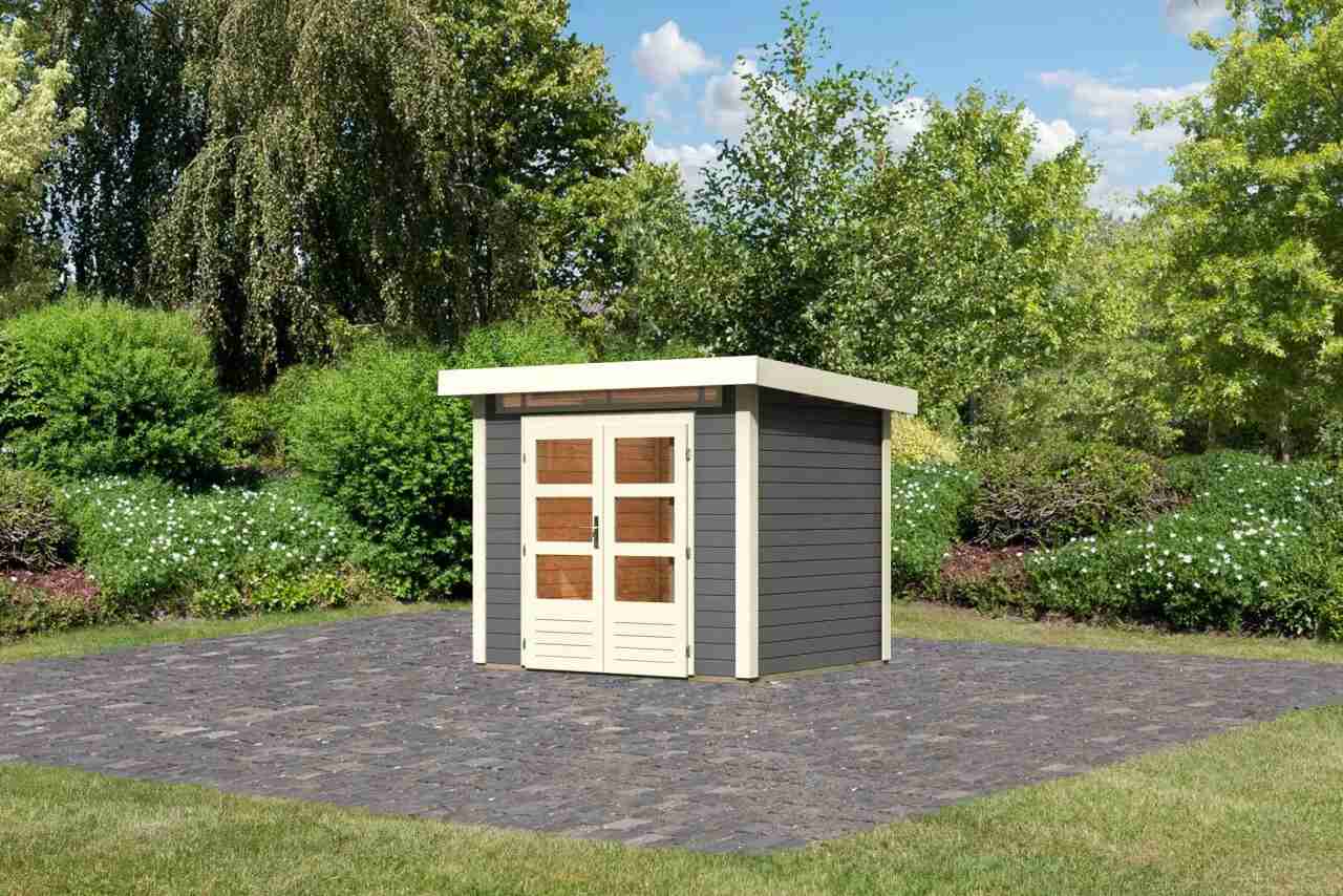 Tento model domku dodáváme v profesionálním nátěru KARIBU (odstín terragrau RAL 0604005):