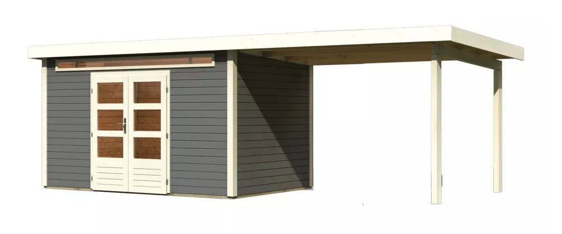 Tento model domku dodáváme v profesionálním nátěru KARIBU (odstín terragrau RAL 0604005):
