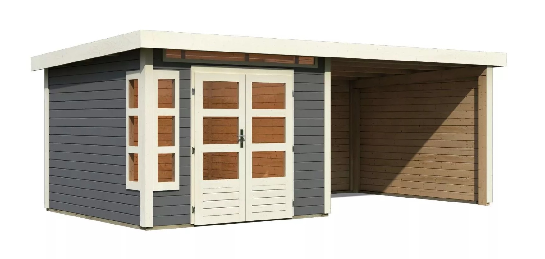 Tento model domku dodáváme v profesionálním nátěru KARIBU (odstín terragrau RAL 0604005):