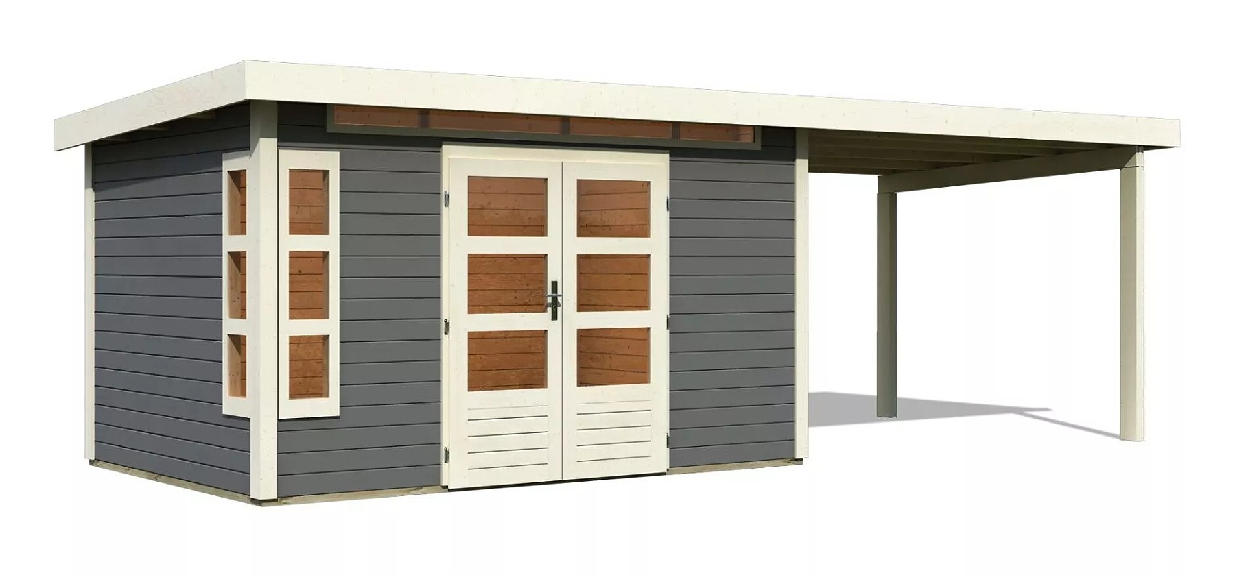 Tento model domku dodáváme v profesionálním nátěru KARIBU (odstín terragrau RAL 0604005):