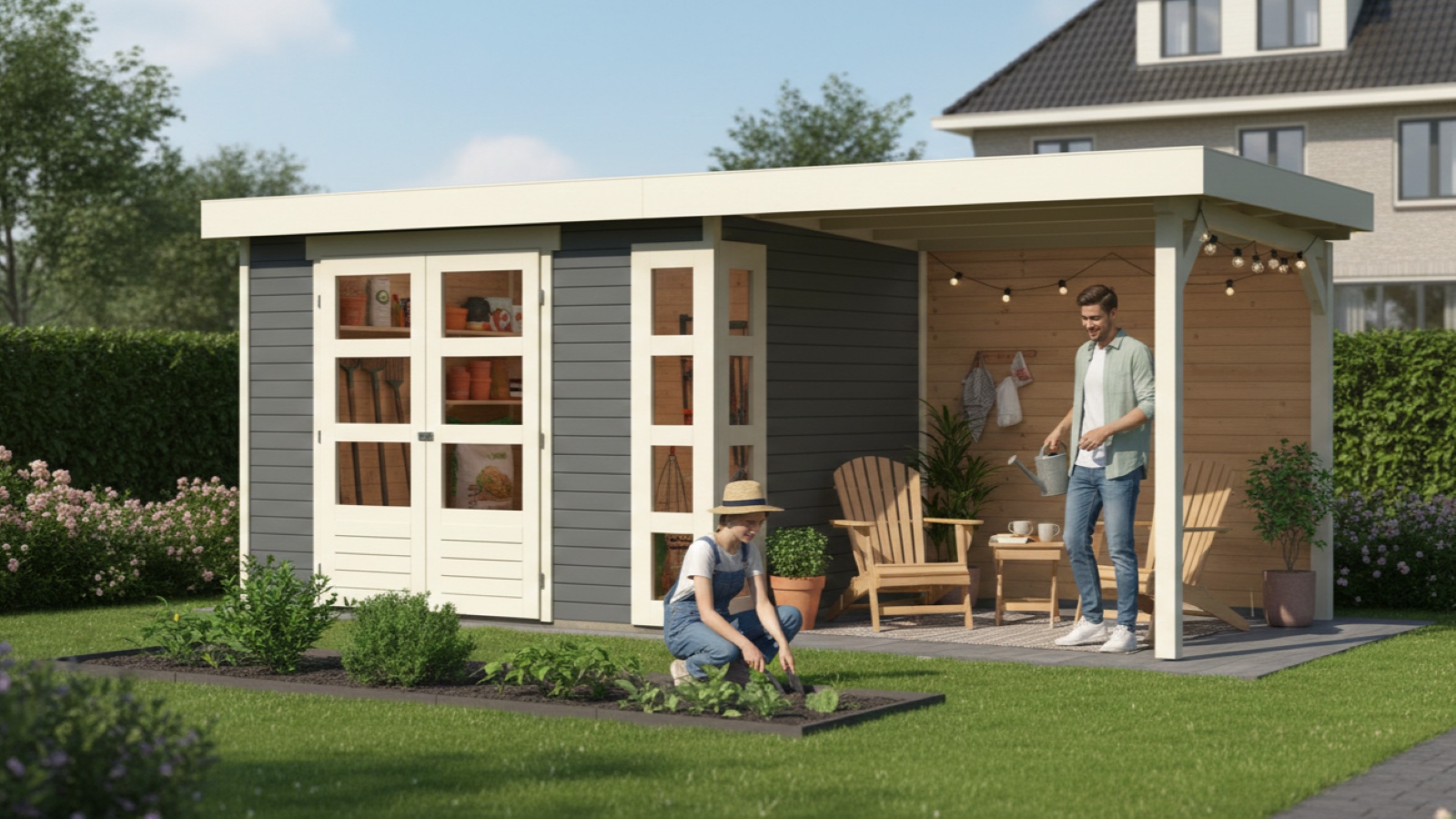 Tento model domku dodáváme v profesionálním nátěru KARIBU (odstín terragrau RAL 0604005):