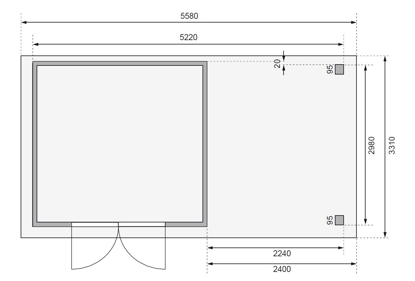 - vnější rozměr š 522 x d 306 cm