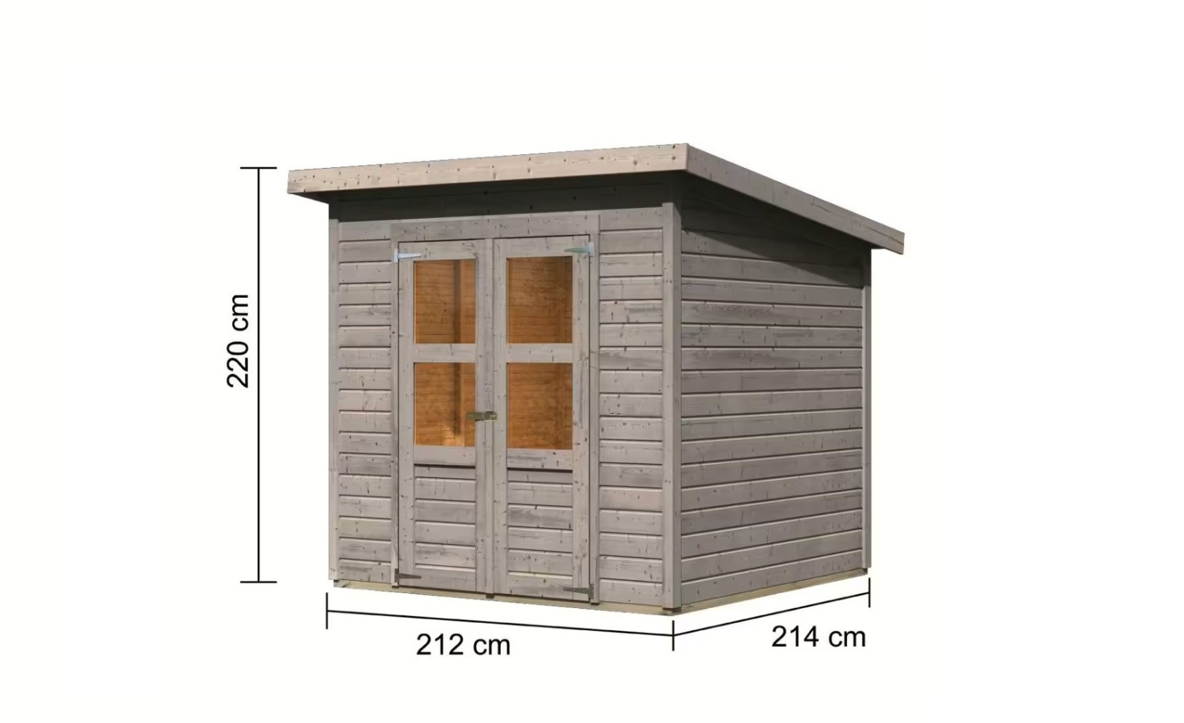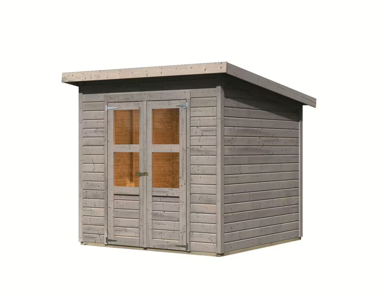 Tento model domku dodáváme v profesionálním nátěru KARIBU (odstín světle šedé RAL 360 60 05):