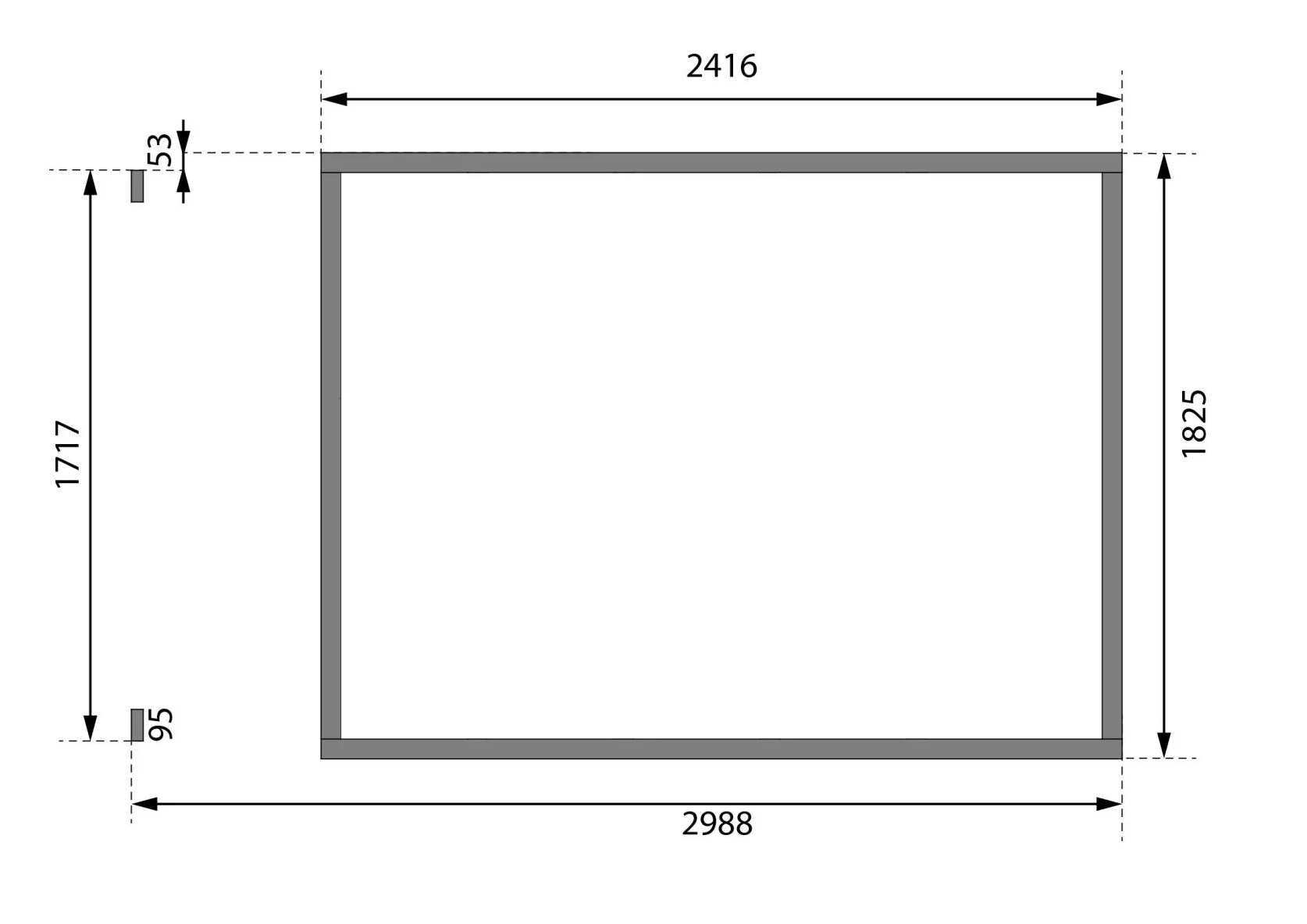 Věnujte prosím MIMOŘÁDNOU péči při budování základu pro domek. Základ postavte tak, aby horní hrana základu přesahovala asi 5 cm okolní terén. Základ musí být přesně vyvážen do vodorovné roviny a odvodněn, aby základové trámky ležely v rovině. Aby bylo zabráněno přímému kontaktu se zemí a vniknutí zemní vlhkosti do trámků, podložte nosný rošt domku pásky z bitumenové lepenky (nejsou součástí dodávky). Pro trvanlivost základu je nutno dodržet tyto nejdůležitější předpoklady - podklad, pravoúhlost a přesná rovina. S kvalitním základem vydrží domek o mnoho let déle. Nechte si poradit nebo základ zhotovit odborníkem-stavařem.