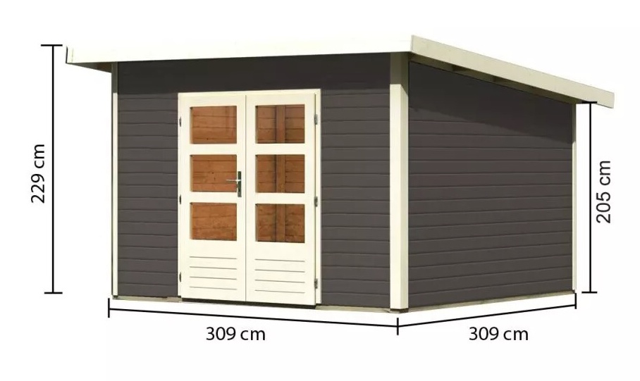 Tento model domku dodáváme v profesionálním nátěru KARIBU (odstín terragrau RAL 0604005):
