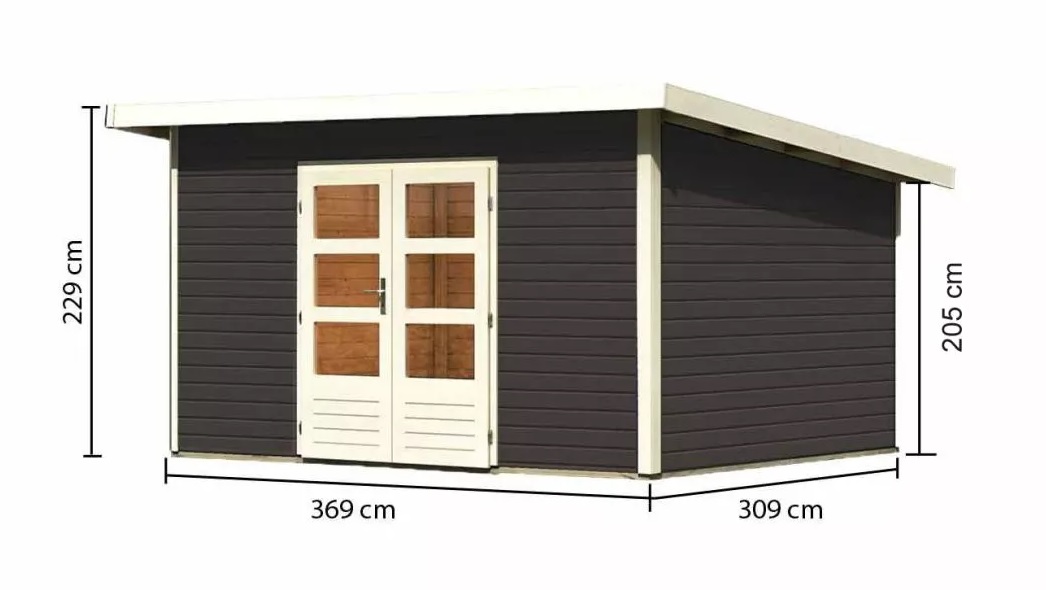 Tento model domku dodáváme v profesionálním nátěru KARIBU (odstín terragrau RAL 0604005):
