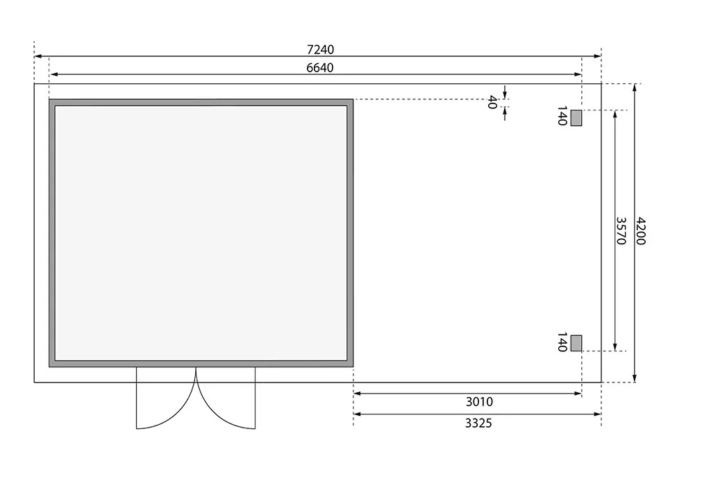 Tato verze domku obsahuje přístavek délky 330 cm montovatelný zprava nebo zleva.