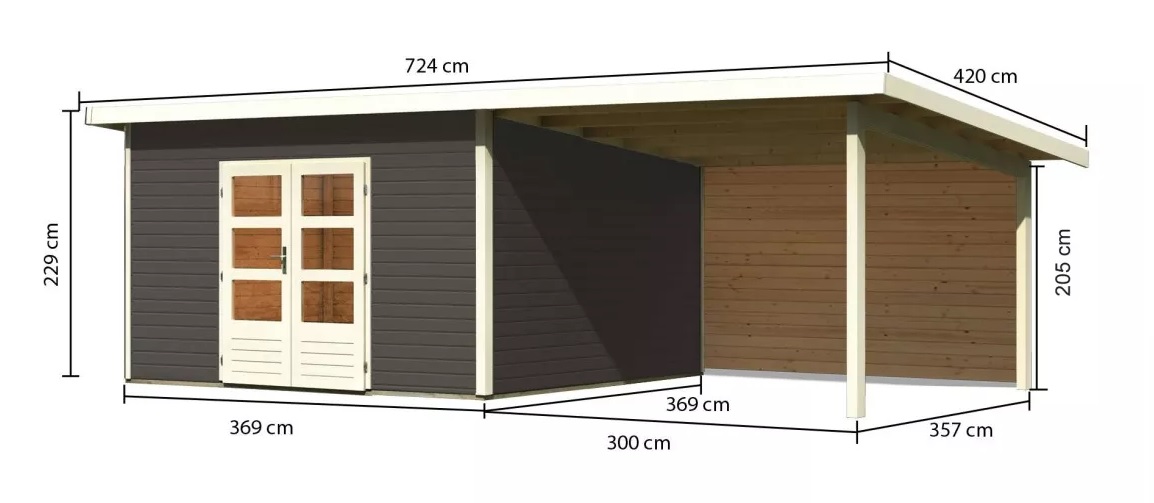 Tento model domku dodáváme v profesionálním nátěru KARIBU (odstín terragrau RAL 0604005):