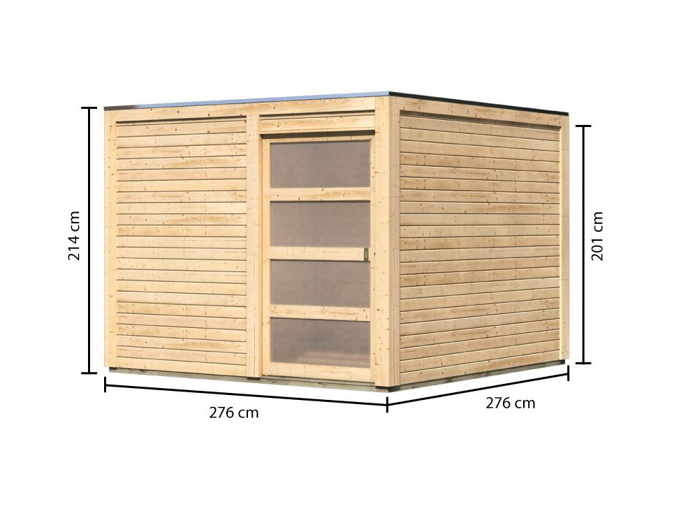 Designově velmi zajímavý domek v moderním stylu. Plochá střecha. Stavebním materiálem domku jsou profily síly 19 mm perfektně vyfrézované ze severského smrku. Dodáváme jako stavebnici v rozloženém stavu, kde stěny tvoří jednotlivé dřevěné profily, které pouze sesadíte k sobě a sešroubujete, střechu tvoří dřevěné desky síly 16 mm. To garantuje extrémně jednoduchou montáž, kterou zvládne každý český kutil.