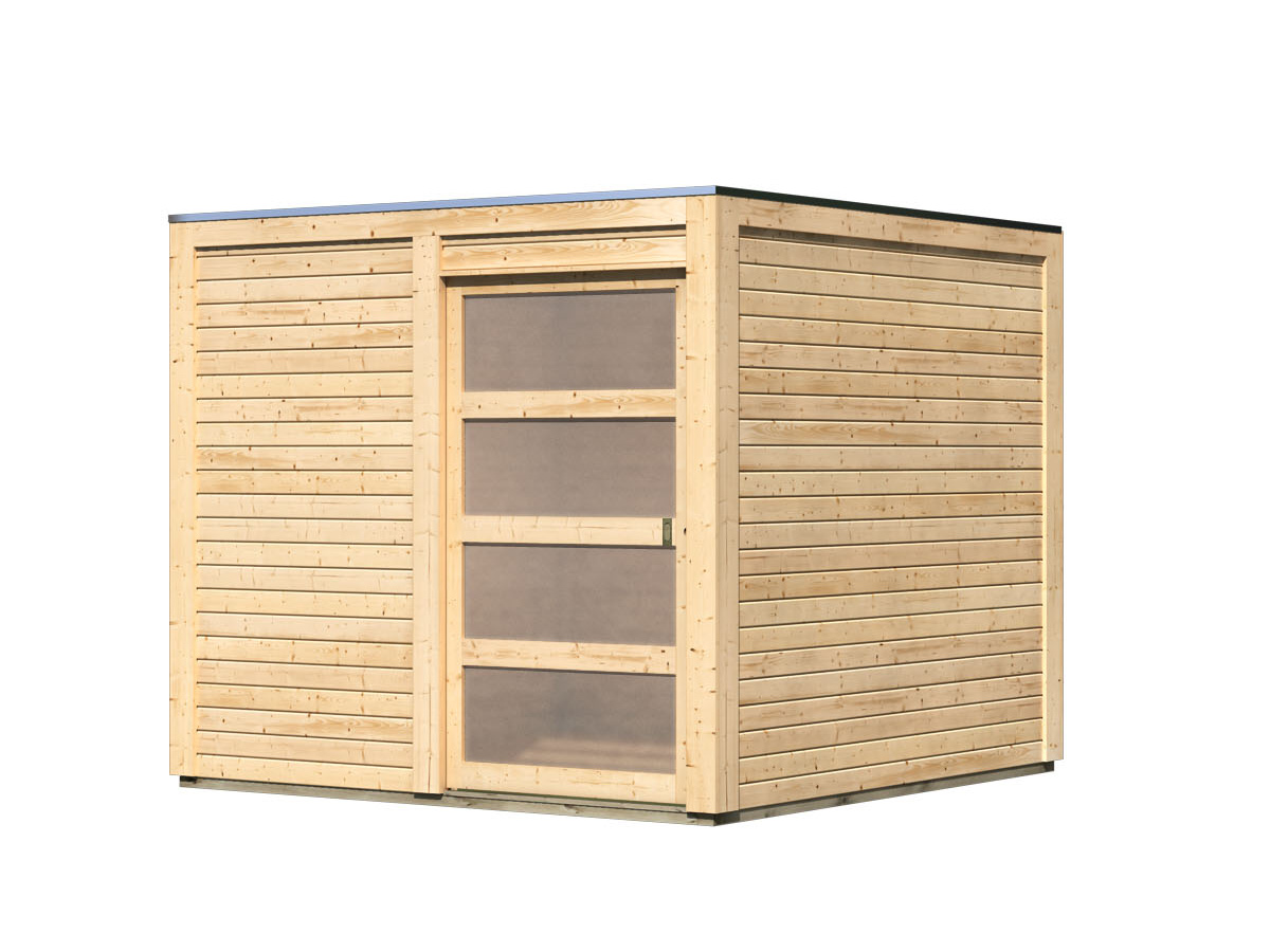 Designově velmi zajímavý domek v moderním stylu. Plochá střecha. Stavebním materiálem domku jsou profily síly 19 mm perfektně vyfrézované ze severského smrku. Dodáváme jako stavebnici v rozloženém stavu, kde stěny tvoří jednotlivé dřevěné profily, které pouze sesadíte k sobě a sešroubujete, střechu tvoří dřevěné desky síly 16 mm. To garantuje extrémně jednoduchou montáž, kterou zvládne každý český kutil.