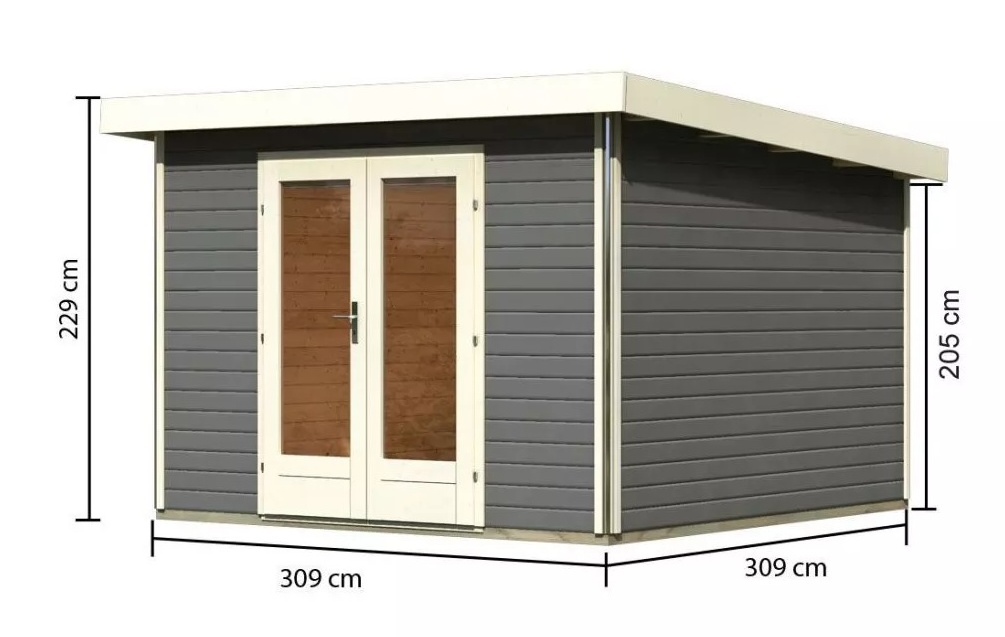 Náš zahradní domek Radeburg 1 zaujme extrémně stabilní tloušťkou stěny 38 mm s vodoodpudivým profilem perfektně vyfrézované ze severského smrku. To znamená, že zahradní domek odolává větru a počasí a stojí stabilně na vaší zahradě. Střecha je vyrobena z masivních dřevěných desek a je optimálně chráněna. Dodatečný přesah střechy na každé straně chrání zahradní domek před srážkami a vlhkostí přicházející shora. Tento model má pultovou střechu a dvoukřídlé dveře na pantech s oknem v každém křídle. Dodáváme jako stavebnici v rozloženém stavu, kde stěny tvoří jednotlivé dřevěné profily, které pouze sesadíte k sobě a sešroubujete. To garantuje extrémně jednoduchou montáž, kterou zvládne každý český kutil.