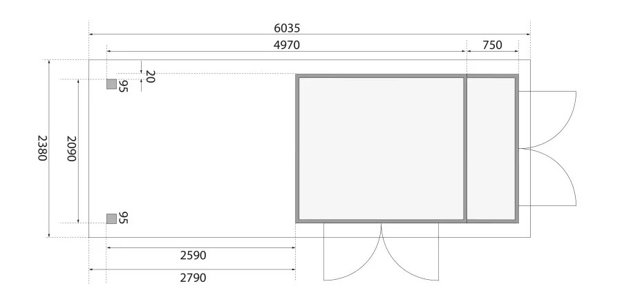 Tato verze domku obsahuje i přístavek délky 280 cm.