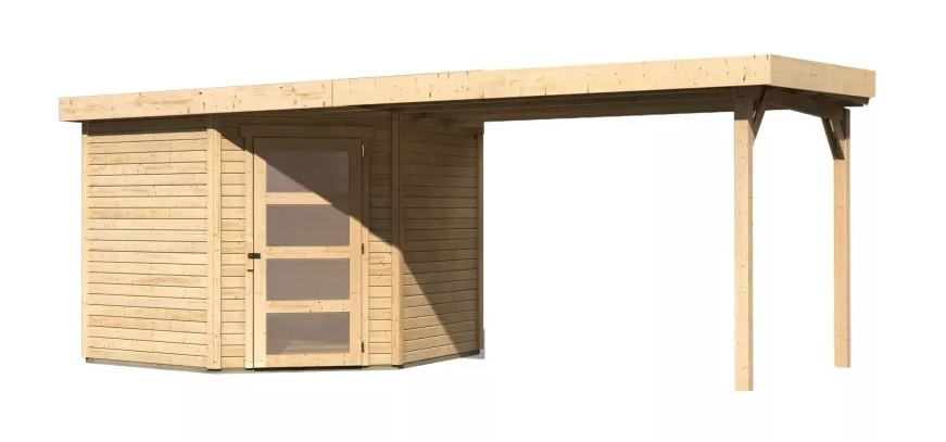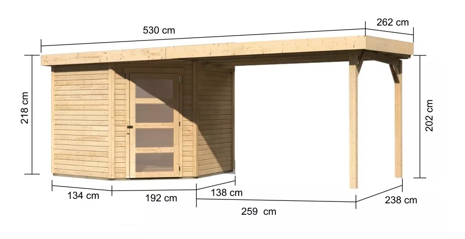 Tato verze domku obsahuje přístavek délky 280 cm montovatelný zprava nebo zleva.