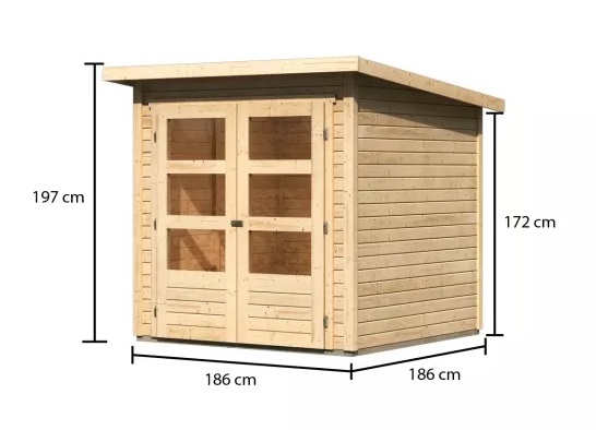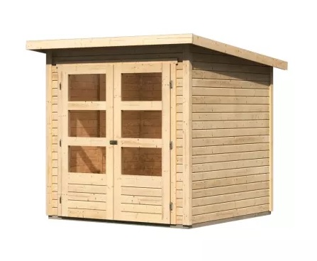 Základní model dřevěného domku pro vaši zahradu. Tento model má pultovou střechu a dvoukřídlé dveře na pantech s oknem v každém křídle. Stavebním materiálem domku jsou dřevěné profily síly 19 mm perfektně vyfrézované ze severského smrku. Dodáváme jako stavebnici v rozloženém stavu, kde stěny tvoří jednotlivé dřevěné profily, které pouze sesadíte k sobě a sešroubujete, střechu tvoří celistvá deska. To garantuje extrémně jednoduchou montáž, kterou zvládne každý český kutil.