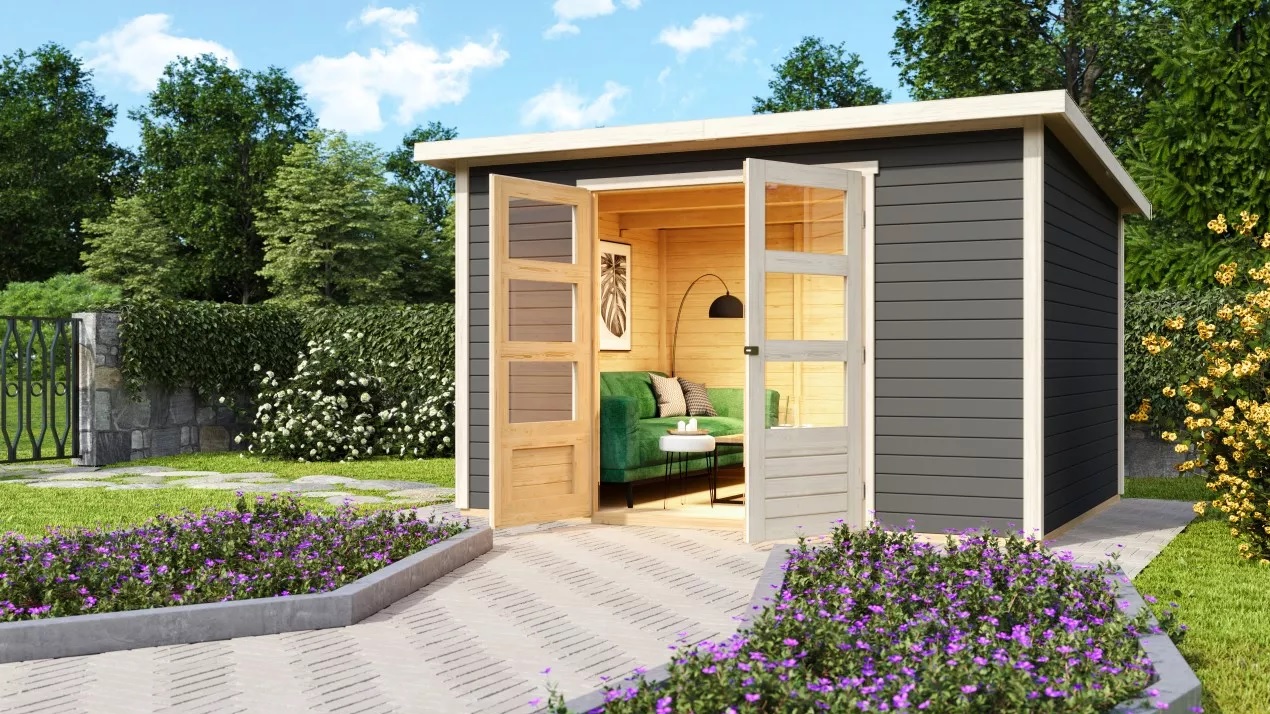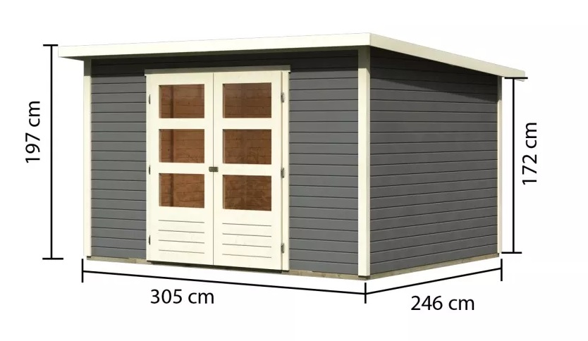 Tento model domku dodáváme v profesionálním nátěru KARIBU (odstín terragrau RAL 0604005):